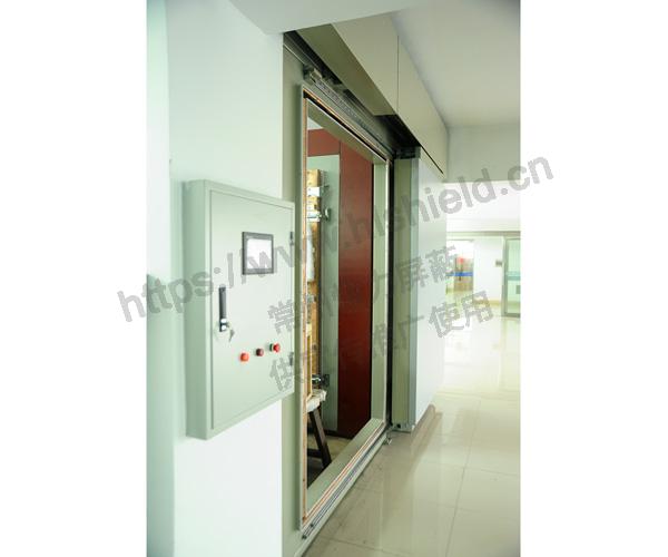 屏蔽門運動方式為:關門時首先橫向平移,然后縱向前行,屏蔽門運動到位后,四個斜楔鎖定機構工作,使門扇緩緩壓入門框上的簧片槽中形成電磁密封腔。采用雙刀四簧電磁密封結構從而保證屏蔽效能高且穩定可靠。